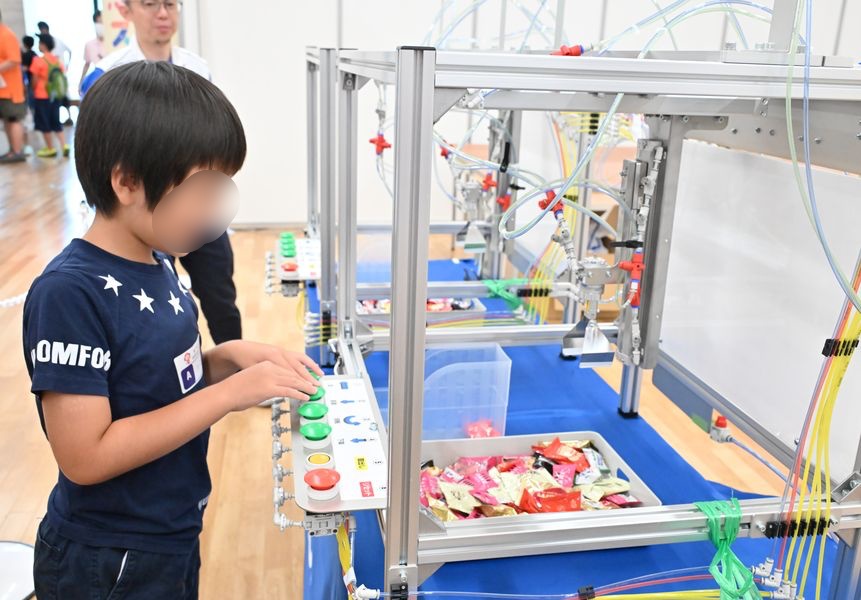 このほか、空気圧だけを使ったクレーンゲーム機に子どもたちが大興奮。クレーンの操作、ポンプで空気圧を送る役割、と初対面の子どもたちが分担して、すぐに仲良くなった。