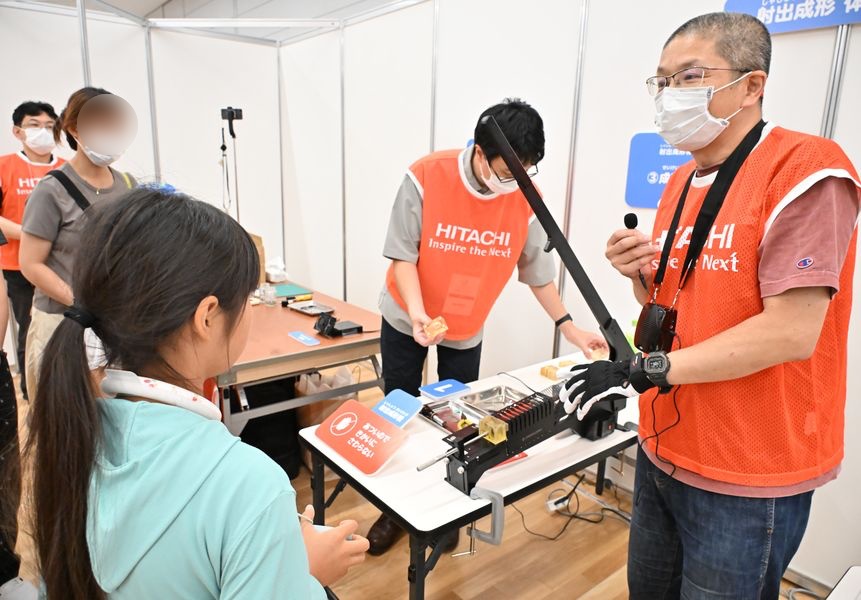 同社OBや地元茨城県日立市の教員OBらで組織する日立理科クラブは、電気でコップが回転することでモーターの仕組みを教えたり、風力、水力、火力、原子力といった発電所の仕組みを模型で示したり。子どもたちの目はキラキラと輝いた。