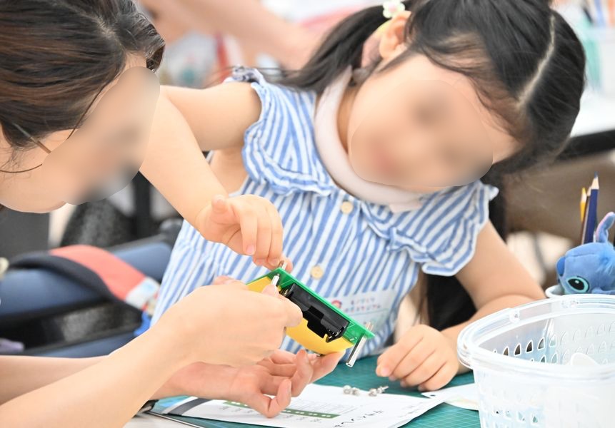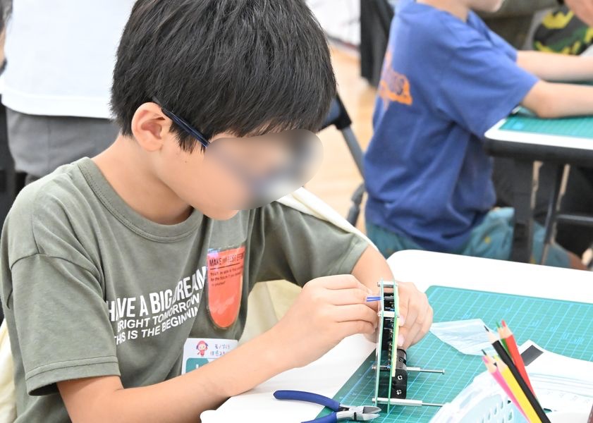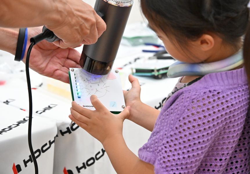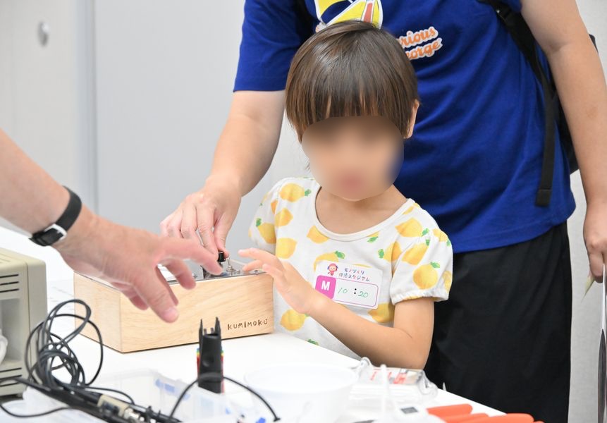 参加した保護者は「モノの仕組みを知る良い機会」とし、小学4年生の男子は「温度がわかる仕組みがおもしろかった」と自作温度センサーを手に話す。非常時にならないと気づかれない製品を知ってもらおうと、今回のために考案したプログラム。