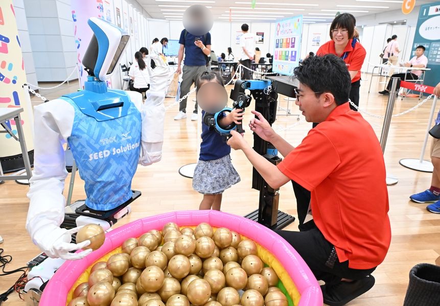 また、ロボットアーム操作でプラスチック球をつかみ、身体の拡張をバーチャルに実感するなど、同社技術を体験してもらうコーナーもにぎわった。