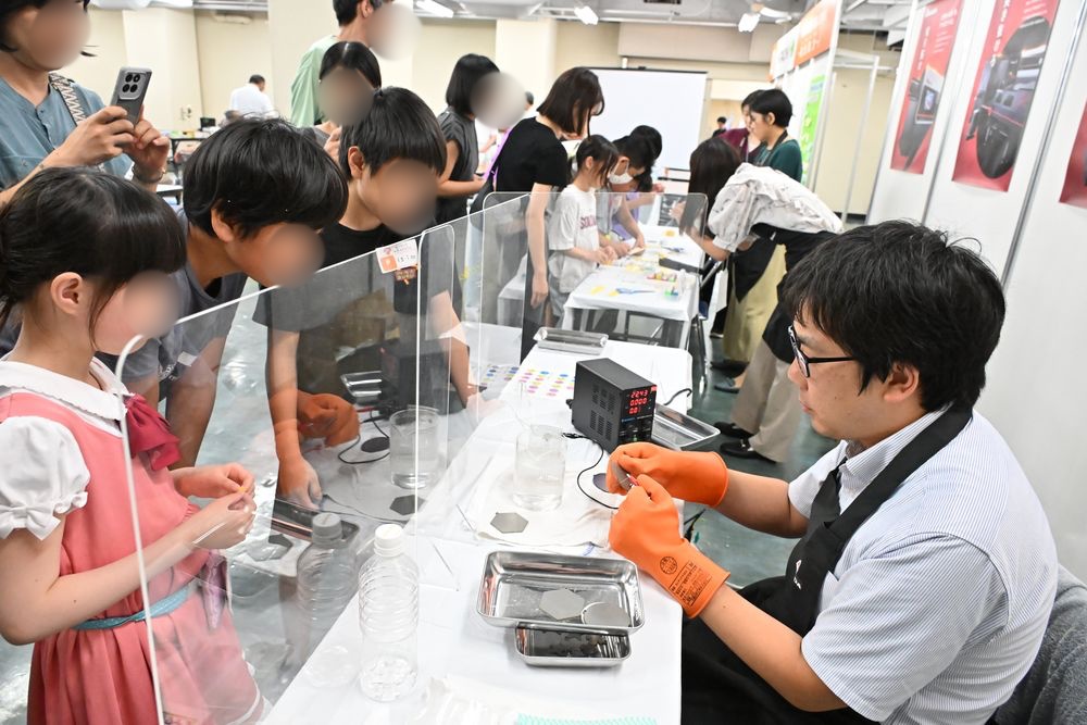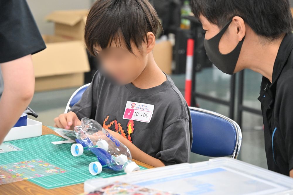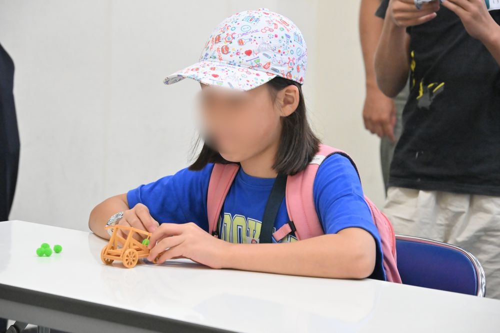 電気自動車(EV)の模型づくりを通じてモノづくりの楽しみや喜びを知ってもらい、興味・関心を引き出すワークショップだ。完成したEVの模型が特設コースを駆け抜けると、子どもも大人も大きな歓声をあげた。東京都から訪れた小学3年生の男の子は「自分で作った模型がレースに1番になってうれしい。また来たい」と自慢のマシンを手に話した。付き添った母親も「夏の自由研究にぴったりだった」と明るい表情を見せた。