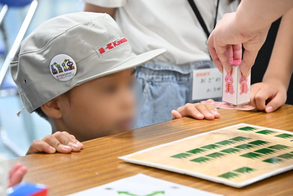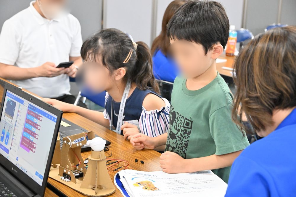 電池で動くロボットの模型を作りながらエンジニアの仕事を学ぶ小学生向けのワークショップだ。細かい部品の取り付けや工具を使った複雑な工程もあったが、親子で協力しながら乗り越え、模型が動き出すと、揃って笑顔を咲かせていた。神奈川県から来た小学5年生の男の子は「ドライバーを使う作業が難しかったけど、模型が完成してうれしい」と話し、付き添いの父親も「子どもに良いところを見せることができた」と目を細めた。