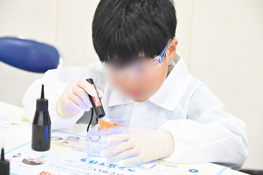 自社の事業や製品について認知を広げるためのプログラム。紫外線を当てると硬化する接着剤や嫌気性封着材など、日常生活では知る機会が少ない同社製品を紹介した。実際に接着剤を使い、貝殻や恐竜のフィギアなどで思い思いに飾り付けた世界に一つのペン立ては、子どもたちの宝物になりそうだ。神奈川県から来場した小学4年生の女の子は「接着剤の種類が多くて驚いた。紫外線を当てて固まる接着剤が面白かった」と目を輝かせていた。