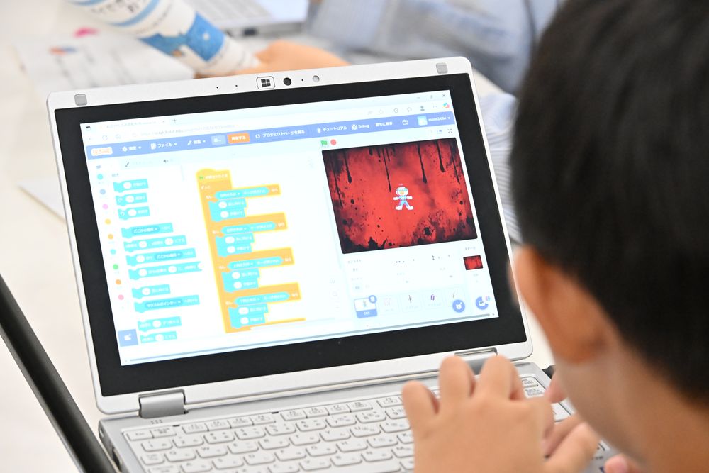 はじめてパソコンを触る子供でしたが、楽しくゲームを作成することができて楽しそうでした。